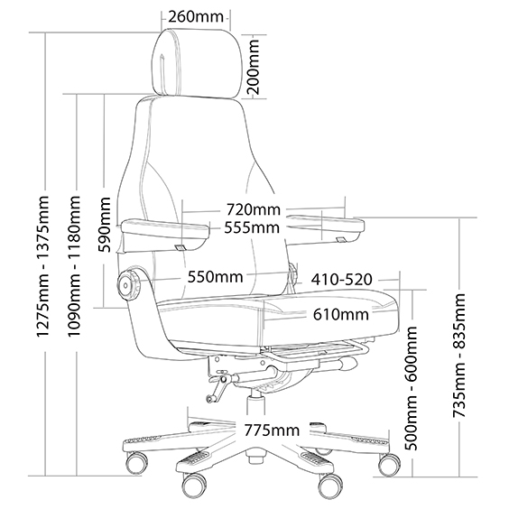 • Seat slider for adjustable seat depth (seat depth range 410mm-520mm)